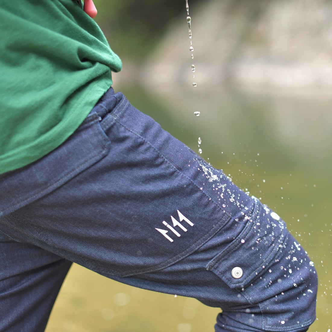 インディゴ・ブラックともに抜群にストレッチ性の効いた10オンスデニムを使用。しゃがんだり、立ったり、登ったりという釣りの動作を快適にします。さらにスーパー撥水加工を施されたデニムは朝露、水しぶき、急な雨といった不快から守ってくれます。