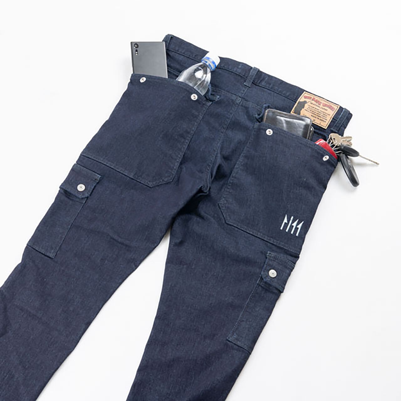 【12月に32インチ再入荷】スリムシルエット:ストレッチデニムカーゴパンツ BW-403VM
