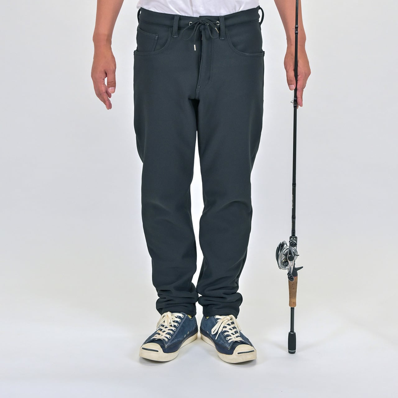 裾はすっきり細めで、ブーツや長靴にもインしやすく、釣り場での快適さを追求。