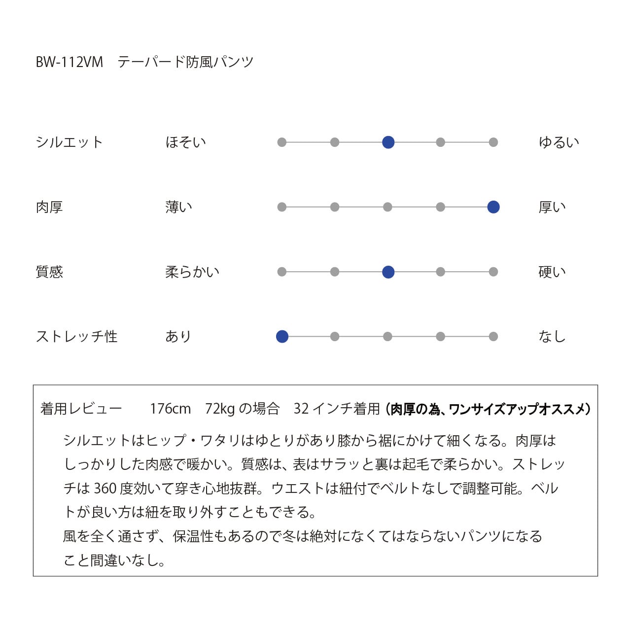 THE BACK WATER がユーザーの声に応えて生み出した新作 「BW-112VM 撥水テーパードストレッチ防風パンツ」。