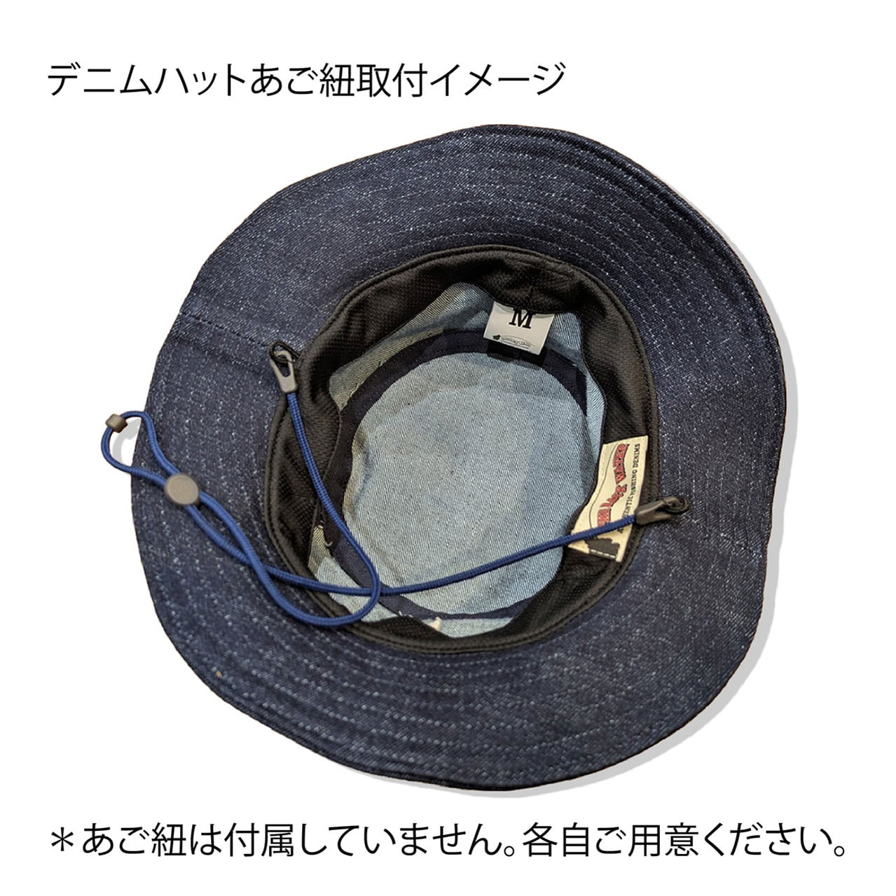 ハットの内側両脇に、アゴ紐取付用のループを付けています。