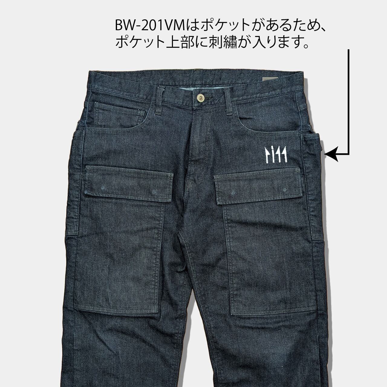 パンツのフロント左腿に、THE BACK WATERのロゴ刺繍を追加してみませんか?